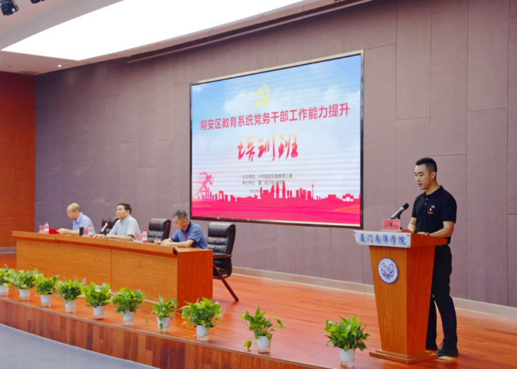 7月19日上午,为期3天的厦门翔安区教育系统党务干部工作能力提升培训班开班式在厦门南洋学院举行。中共翔安区委教育工委委员许志强,我校党委书记施水成、党委委员李振杰及翔安区中小学、幼儿园60名党务干部参加。我校培训中心主任游陈盛主持。