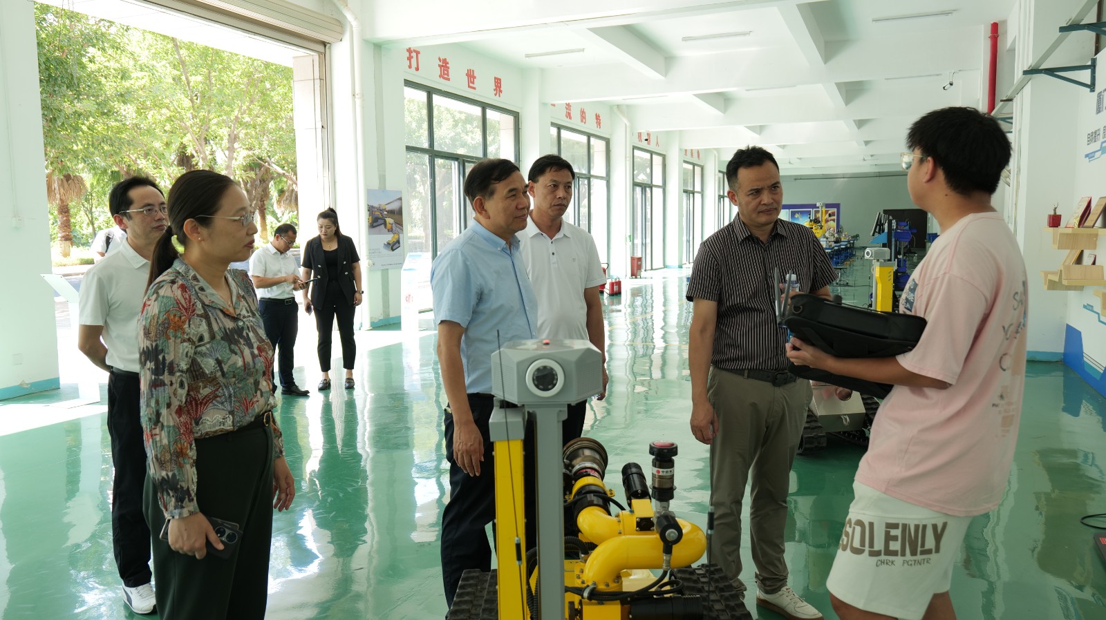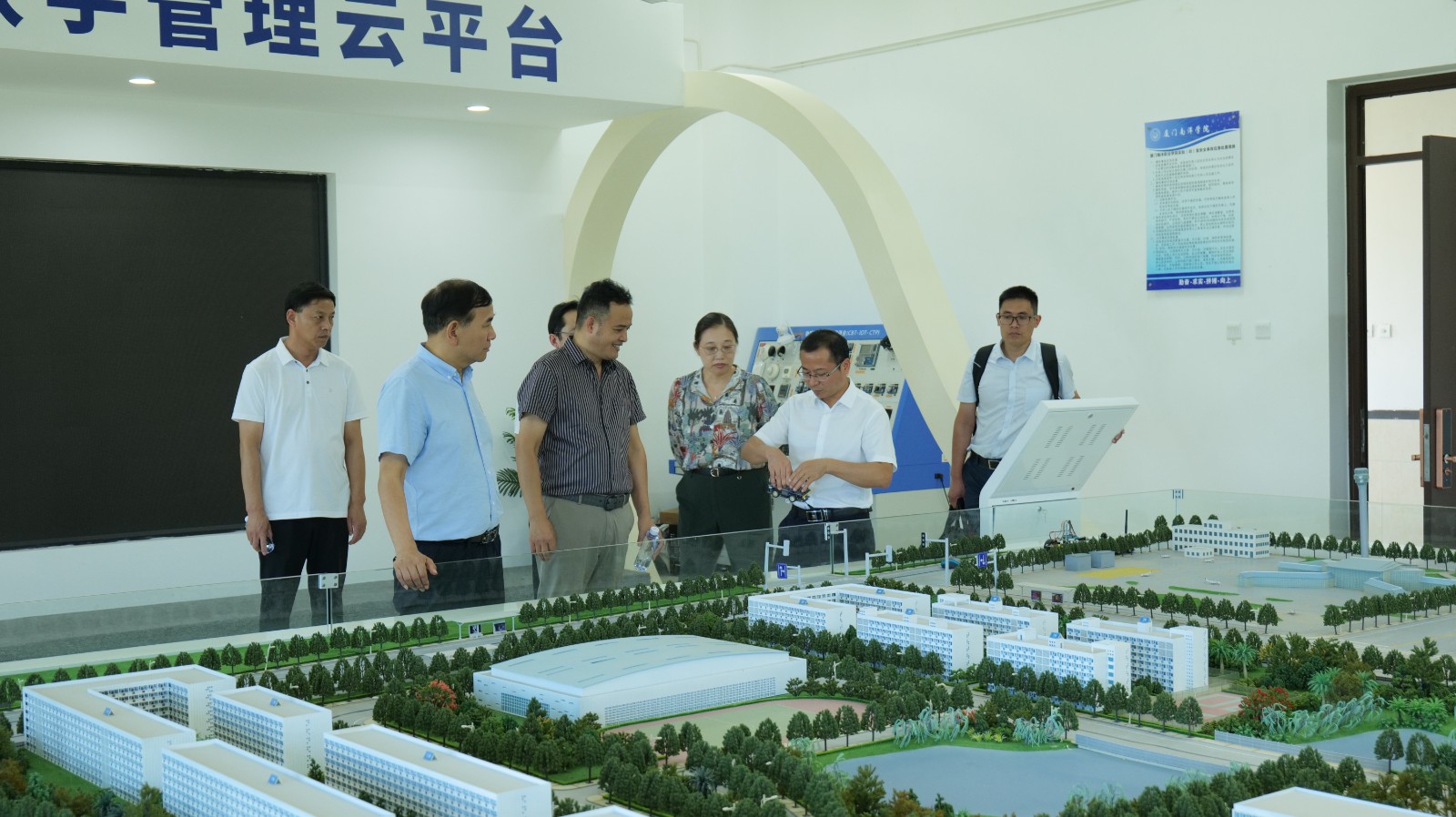座谈会后,李布一行参观了学校环湖步栈道、学生步行街、实训楼、图书馆等地。