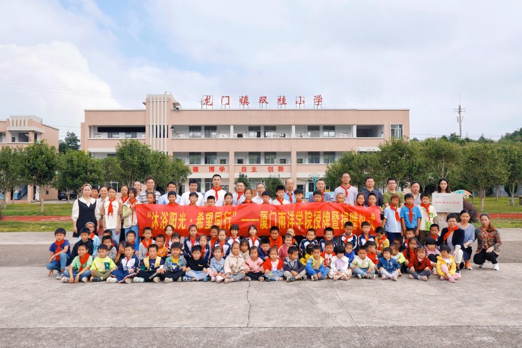 10月12日上午,厦门南洋学院乡村振兴支教站授牌暨捐赠仪式在安溪县龙门镇双桂小学隆重举行。双桂小学校长邱小安、副校长白清霞及双桂小学全体师生,我校创校校董林志民、校长助理李振杰、乡村振兴学院及教育学院相关人员参加授牌暨捐赠仪式。
