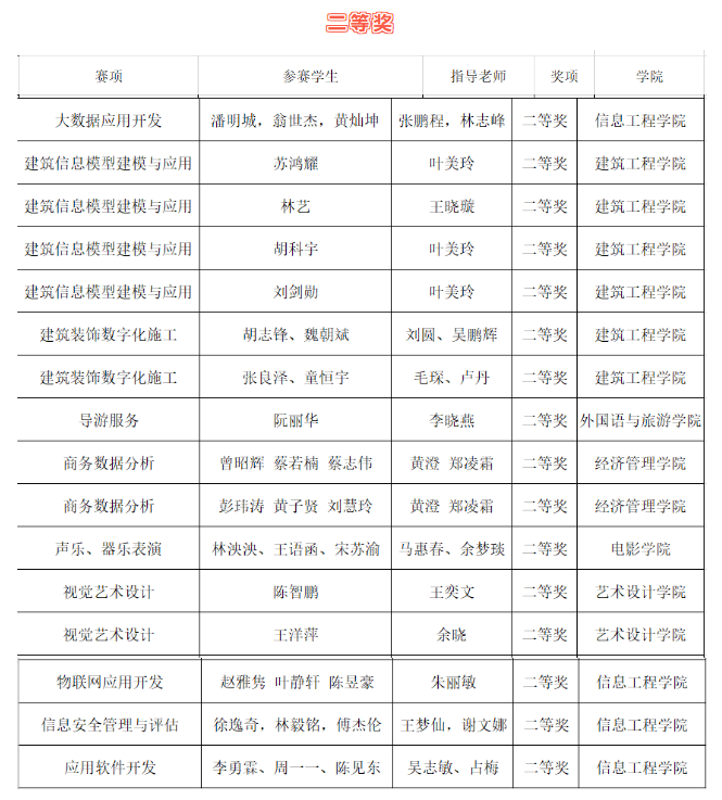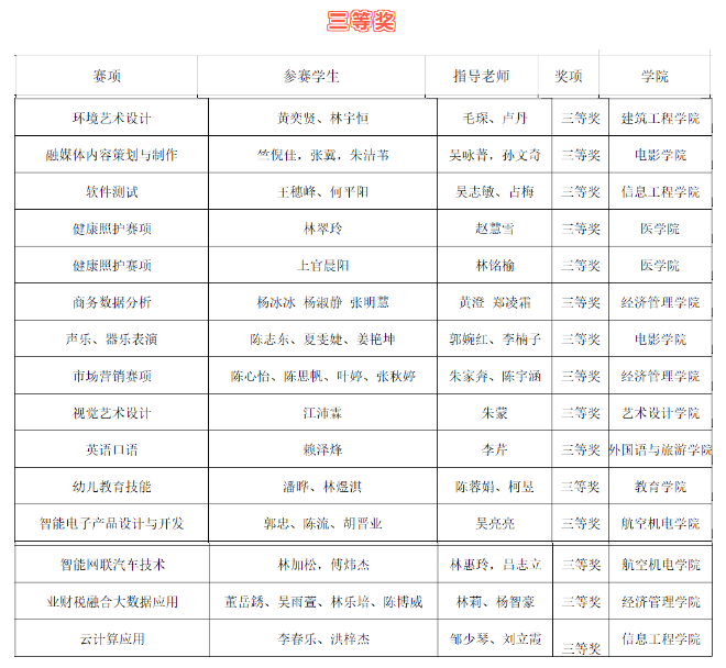 近日,2023年厦门市高等职业院校技能竞赛落下帷幕,我校学子参加了27个竞赛项目的比拼,共斩获38个奖项,其中一等奖7项,二等奖16项,三等奖15项。