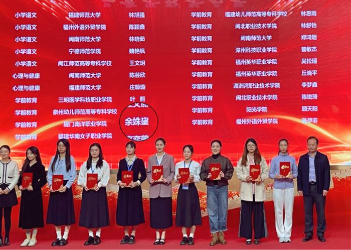 11月24日-26日,由福建省教育厅主办、宁德师范学院承办的第十届福建省师范生教学技能大赛在宁德举行。我校2021级学前教育专业学子余姝鋆、林思瑜分别获得学前教育组三等奖、优秀奖。