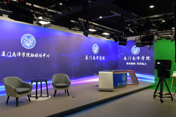 我校融媒体中心由党委宣传部与电影学院共建共管,全校各单位共享共融。中心现有使用面积300多平方米,拥有融媒体演播室、导播室、实训室等功能部室,可提供新闻播报、专家访谈、短视频、网络直播等多场景应用。中心作为学校融媒体相关专业的实训基地,将在产教融合协同育人,服务学校教育教学等方面展现作为。中心构建“1+7+N”全媒体新闻生产体系,集媒体制作、宣传发布、舆情监控、专业教学、技能培训、学术交流等多功能于一体,进一步加强和改进学校的新闻舆论工作,探索“融媒+实训+思政”育人新路径,传播南洋声音、提升南洋形象。