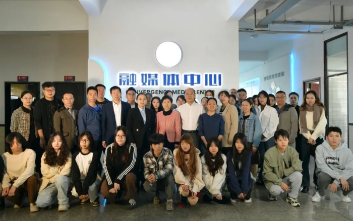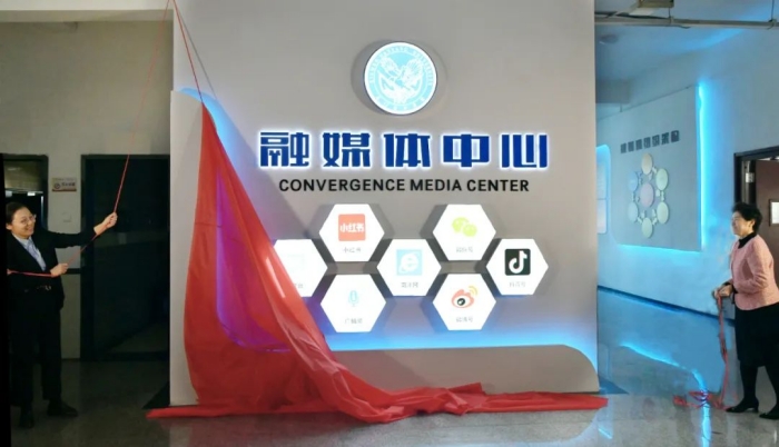 12月7日上午,我校融媒体中心在实训楼K513正式揭牌。校领导陈宏瑶、鲁晓芹、许智坚、李振杰,电影学院、艺术设计学院师生代表,各二级学院党总支书记、宣传委员,相关职能部门负责人以及融媒体中心实习记者等参加揭牌仪式。