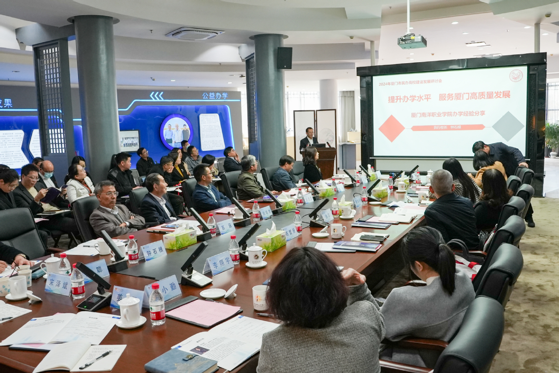 研讨会上,我校执行校长钟石根教授代表学校分享办学经验,以《提升办学水平 服务厦门高质量发展》为题,介绍南洋学院在办学、治校、育人三个方面的创新举措,并提出民办高校面临生源减少、人工智能等挑战。