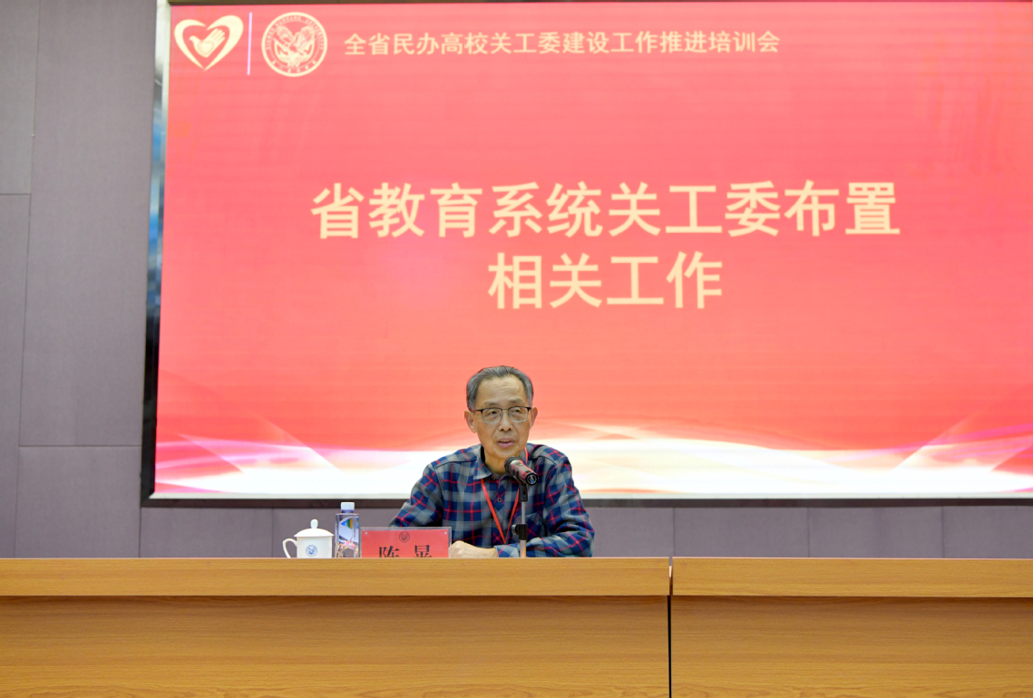 陈晃代表省教育系统关工委具体布置相关工作。他强调了学习教育部工作会议和全面贯彻落实党的二十代关于教育强国的建设目标的重要意义,指出民办高校要在文明创建、教育指导,提升领导班子“双赢”能力等方面下足功夫;要从民办高校的实际出发,补足短板、挖掘资源,将院校亮点融入学校发展方案,强化特色;注重党史学习教育,巩固拓展教育程度,做好新时代人才思想教育工作。