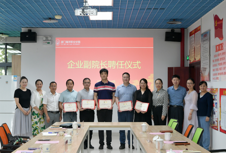 近日,我校2024年企业副院长聘任仪式顺利举行。校领导鲁晓芹、钟石根、许智坚,学校相关部门负责人及多位企业代表出席仪式。我校正式聘任厦门欧米克网络科技有限公司总经理林艺滨为航空机电学院企业副院长,厦门国贸泰和康复医院总经理吕锦松为医学院企业副院长,厦门伽宝园服务咨询有限公司创始人彭宁娟为教育学院企业副院长,厦门米志来信息股份有限公司总经理林利军为信息工程学院企业副院长,厦门知游信息科技有限公司副总经理唐许帅为外国语与旅游学院企业副院长。