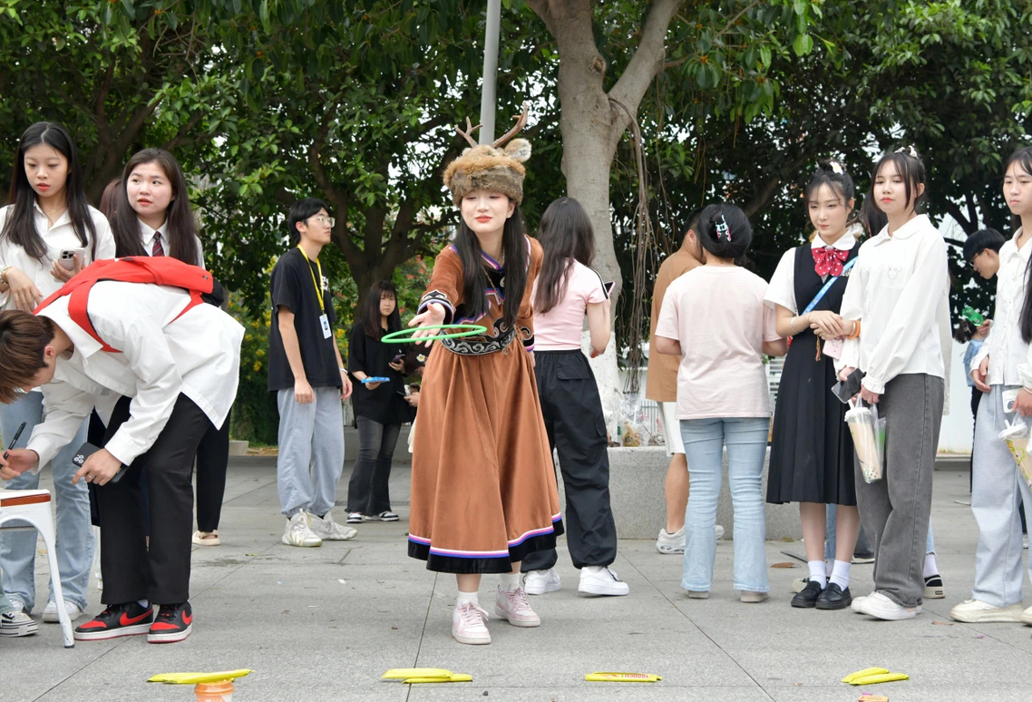 活动汇聚了壮族、鄂伦春族、苗族、畲族、藏族、傣族、蒙古族等多个民族的同学们,他们身着各具特色的民族服饰,犹如一幅生动的民族风情画卷在校园中徐徐展开。