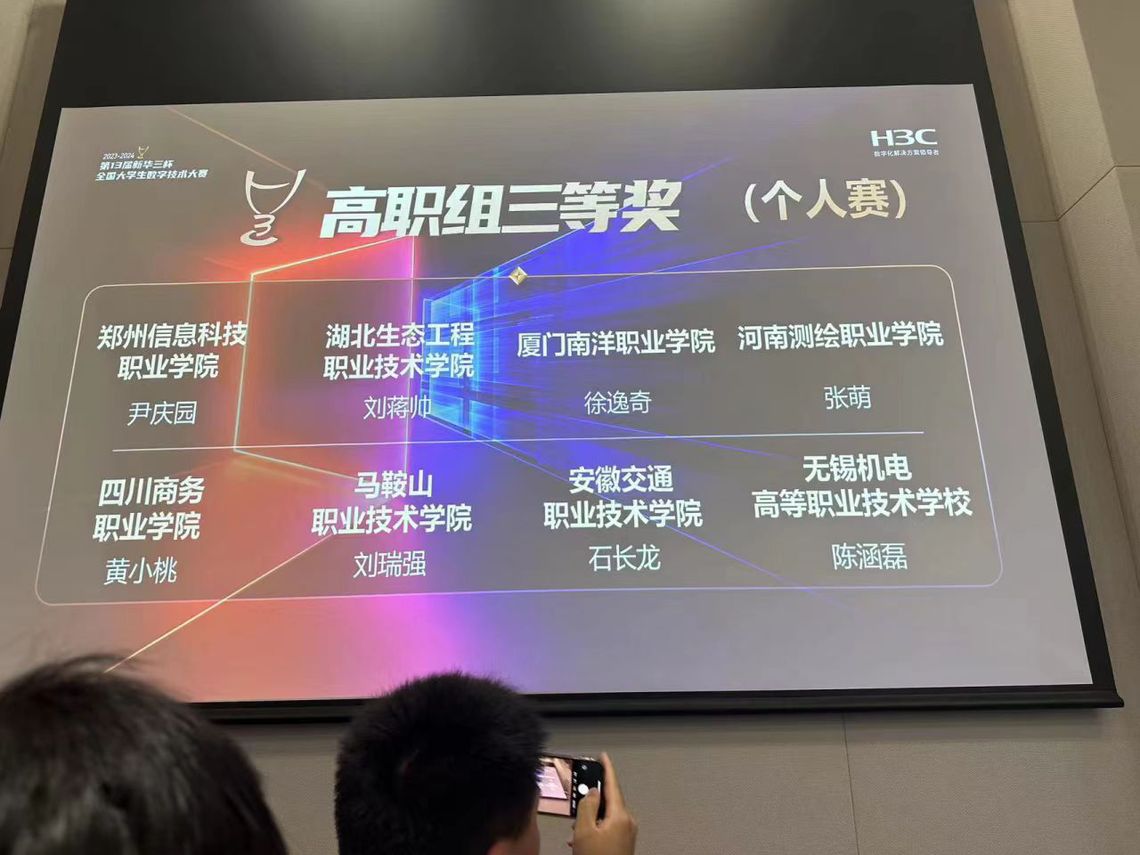 近日,我校学子徐逸奇(指导老师:王梦仙、林熠杰)从近四万名选手中脱颖而出,一路过关斩将,最终在第十三届“新华三杯”全国大学生数字技术大赛中荣获高职组三等奖,也是全国唯一获得该奖项的民办院校学生。