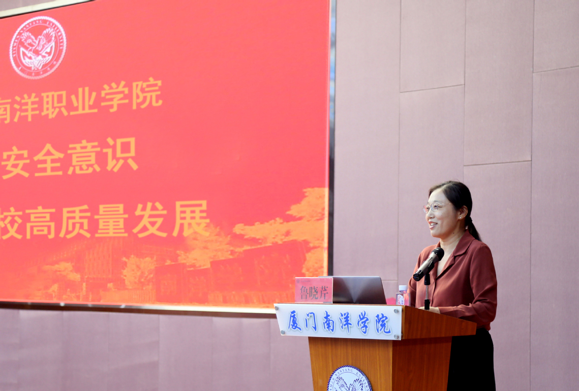 为贯彻落实中共中央国务院印发的《关于深化新时代学校思想政治理论课改革创新的若干意见》和教育部《关于加强新时代高校“形势与政策”课建设的若干意见》等文件精神,充分发挥校领导在学生思想政治教育工作的示范带头作用,我校建立了校领导进课堂的思想政治教育工作机制。11月24日下午,党委委员、执行董事长鲁晓芹为航空机电学院2023级学生上了一堂以《增强安全意识保障学校高质量发展》为主题的思政课。