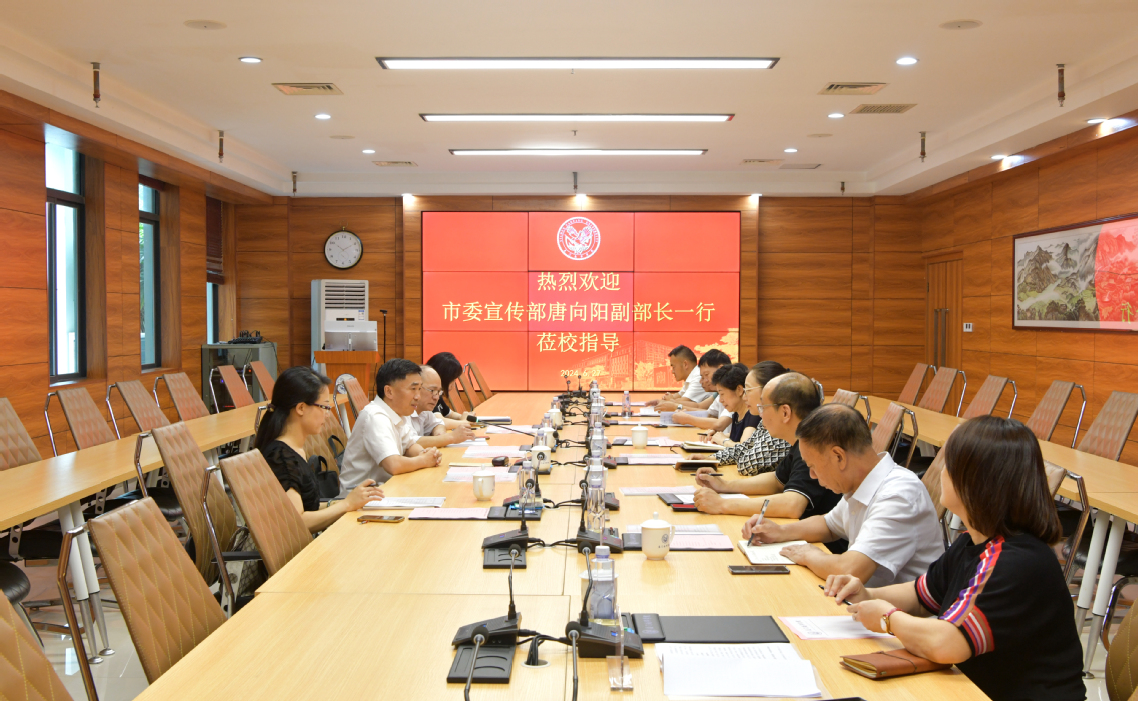 6月27日,市委宣传部副部长、市政研会会长唐向阳,市宣传文化中心科长林海军,市政研会秘书长李素云,市教育局宣传处四级主任科员李翔宇一行4人莅校调研。校领导陈宏瑶、鲁晓芹、许智坚、李振杰、蓝德森及相关人员陪同调研。