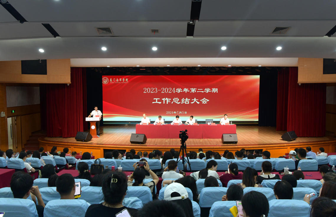 7月5日,我校2023-2024 学年第二学期工作总结大会在活动中心礼堂(主会场)、仙岳报告厅(分会场)召开。校领导陈宏瑶、鲁晓芹、钟石根、许智坚、李振杰、蓝德森及全体教职员工齐聚一堂,总结成绩、明确思路、部署任务,以奋进姿态不断实现学校内涵式高质量发展的新突破。大会由副校长许智坚主持。