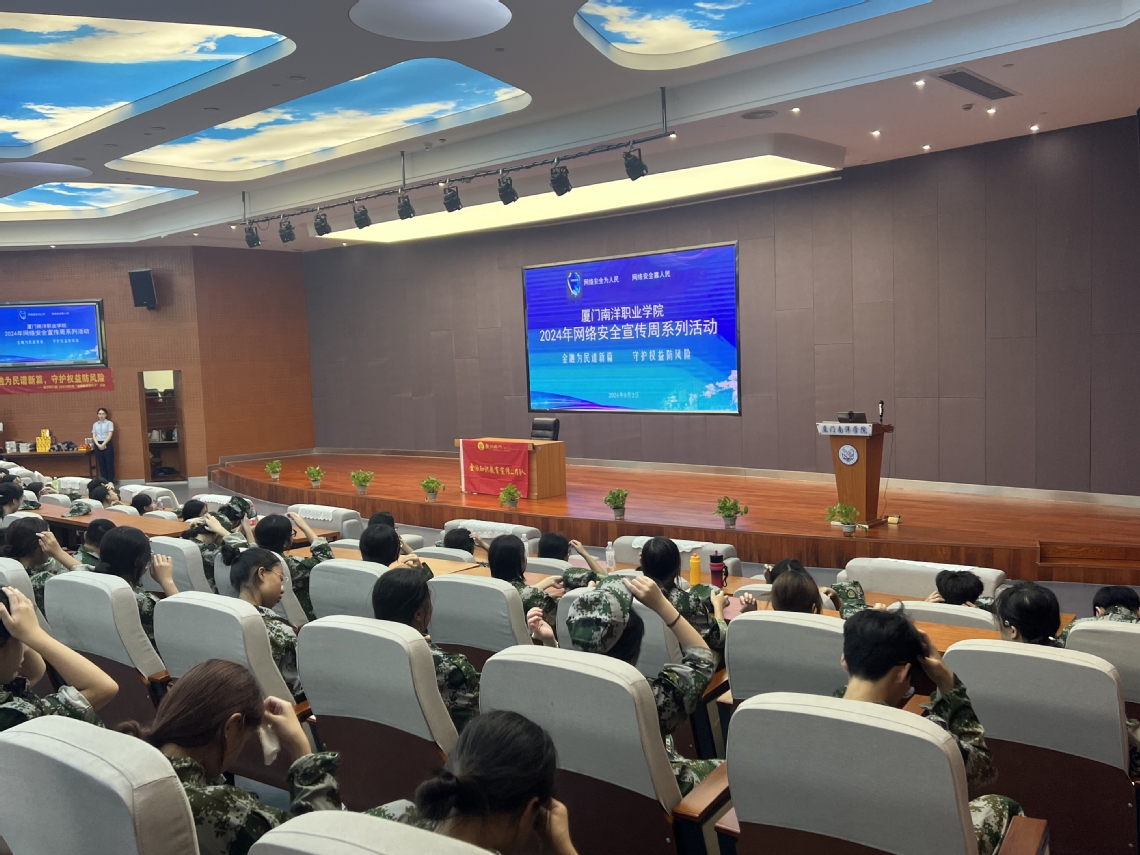 2024年是习近平总书记提出网络强国战略目标10周年,是习近平总书记提出总体国家安全观10周年。为深入贯彻落实习近平总书记关于持续推进金融消费者教育和金融知识普及的重要指示精神,积极推进金融知识纳入教育体系,增强大学生对网络安全和金融安全的认识,培养大学生正确的金融消费观。9月2日,我校特邀请泉州银行厦门分行相关人员开展2024年网络安全宣传周系列活动——金融教育宣传专题讲座。泉州银行厦门分行副行长王明辉,我校执行董事长鲁晓芹及人文社科学院全体新生参加讲座。