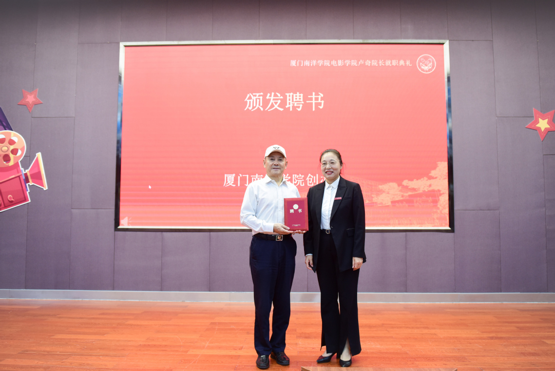 我校创办人鲁加升教授,厦门市中华职教社专职副主任翁玉华,北京师范大学博士生导师尹成奎教授,杭州当当影业有限公司合伙人李铮,厦门风云科技有限公司首席知识官刘开,塞上文化创始人/总经理、影视工业网合伙人张艳阁,原八一电影制片厂高级工程师刘晓春等行业专家,我校领导鲁晓芹、钟石根、许智坚、蓝德森,翔安区委文明办及多所高校师生代表见证典礼仪式。我校执行校长钟石根宣读任命决定,执行董事长鲁晓芹为卢奇院长颁发聘书。