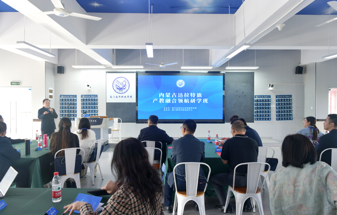李振杰在致辞中对从遥远的内蒙来到闽南地区的研学班成员表示热烈欢迎。他以南洋学院艰苦的创办历程为例生动地介绍了闽南地区“爱拼才会赢”的传统精神,希望全体学员在培训期间细细感悟闽南文化,沉浸享受厦门人文传统和职教理念,期待通过此次培训不断延续“山海情”,继续书写新的灿烂篇章。