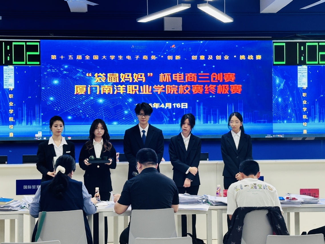 4月16日,第十五届全国大学生电子商务“创新、创意及创业”挑战赛tyc1286太阳成集团校赛终极赛在实训楼J301 (大数据可视化中心)顺利举办。本次比赛由我校三创学院承办,广东袋鼠妈妈供应链管理有限公司冠名赞助。广东袋鼠妈妈集团有限公司董事长徐小建,我校副校长许智坚现场观赛。