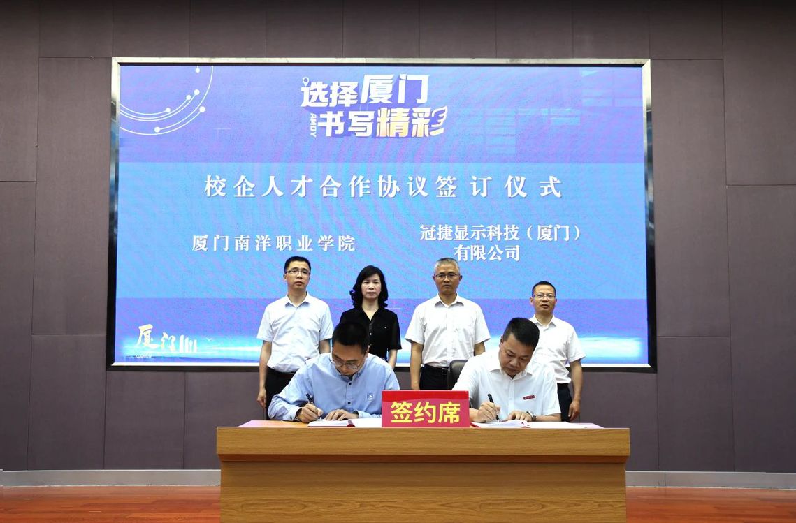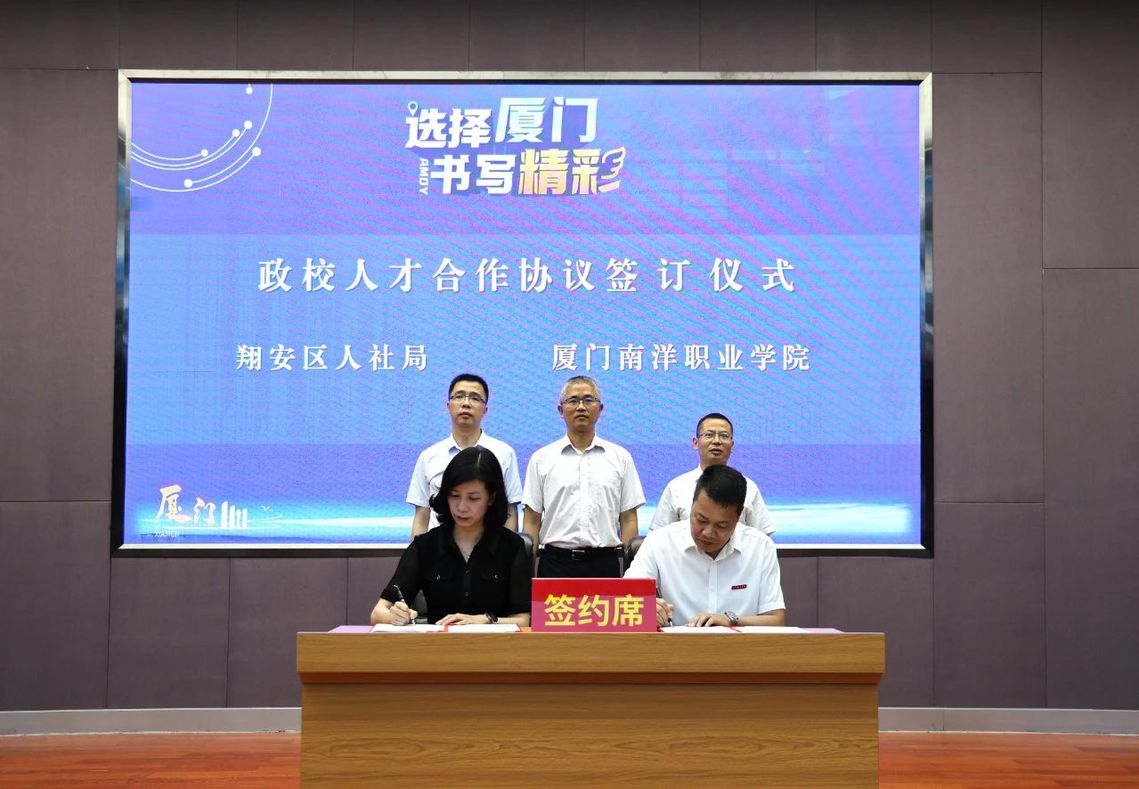 活动现场,翔安区人社局与我校正式签署“政校引才合作协议”,通过协同搭建高质量校企合作平台,精准服务毕业生就业需求,助力区域经济发展。我校与冠捷显示科技(厦门)有限公司、厦门金麦搜信息科技有限公司签订校企人才合作协议,拓宽就业岗位供给渠道,为毕业生留厦发展提供坚实保障。