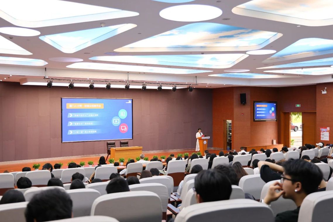 陈艺碧局长以《选择厦门 书写精彩》为题详细介绍翔安区的发展现状与未来前景,指出翔安区正以强劲的产业布局、优越的区位条件和宜居的生活环境,为青年人才提供广阔的成长空间,诚挚邀请学子与翔安区同频共振、共赴未来。沈珑部长围绕《留厦来 更精彩》主题,系统解读厦门市人才引进政策及云招聘平台服务,强调厦门以开放包容的姿态、完善的政策支持及丰富的就业资源,全力护航毕业生逐梦鹭岛,助力广大学子实现职业理想。
