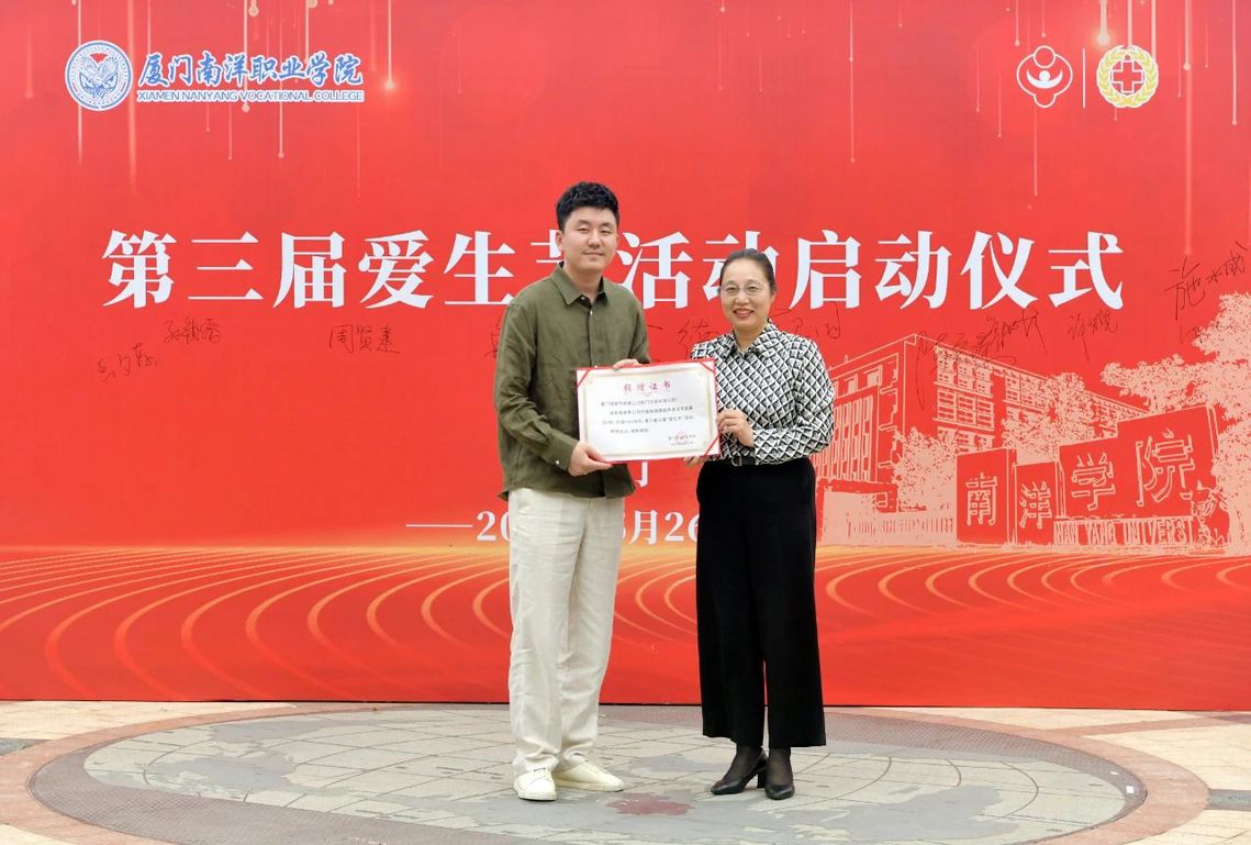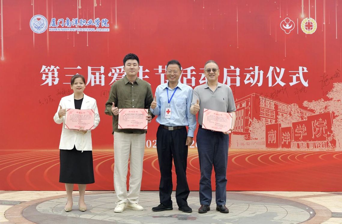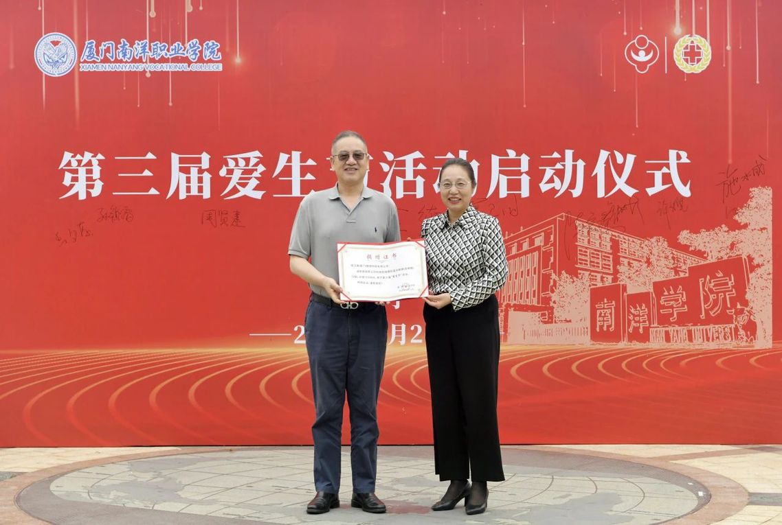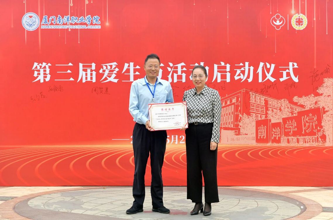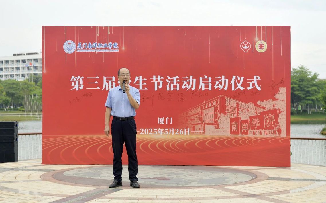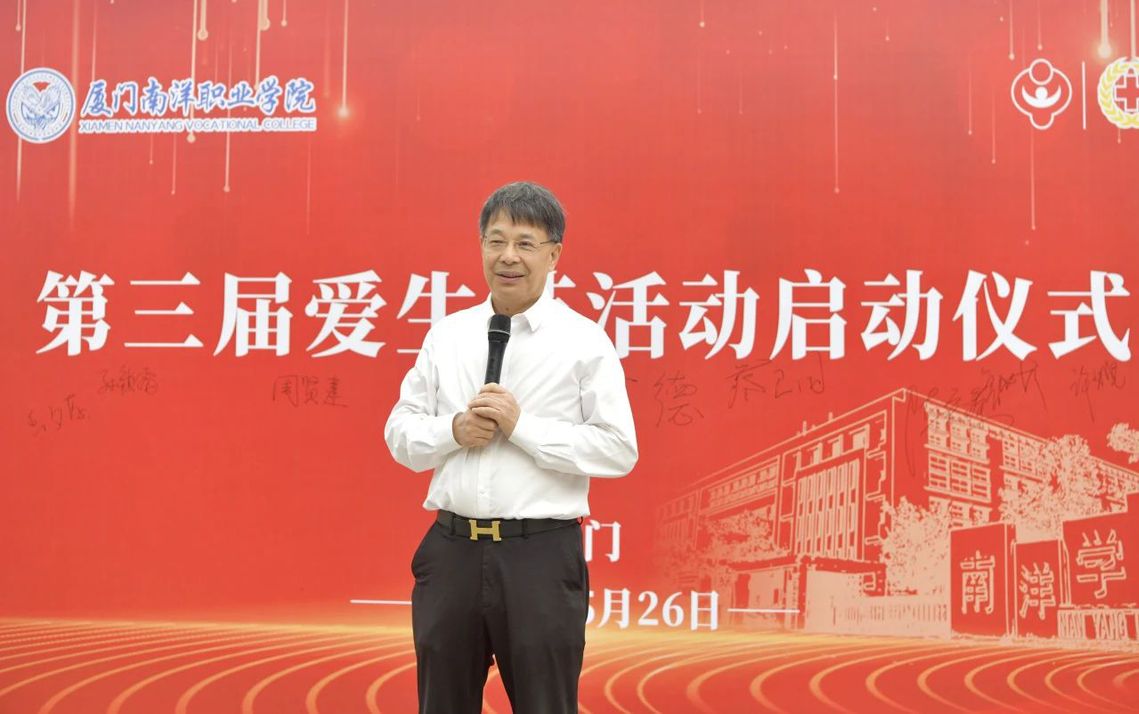 5月26日,我校第三届爱生节活动启动仪式暨“5·25”大学生心理健康教育活动在听雨台举行。学校创办人、南洋教育投资董事长鲁加升教授,翔安区关心下一代工作委员会第一副主任沈金德、湖里区红十字会常务副会长蔡卫国、瑞之路(厦门)眼镜科技有限公司董事长周贤建、厦门科宏眼科医院公益事业部总监卓夕原、厦门湖里力锜第三口腔门诊部有限公司运营总监孙镇雷,我校领导鲁晓芹、陈宏瑶、钟石根、许智坚、李振杰,原党委书记、现关工委执行主任施水成,有关部门负责人,各二级学院党总支书记、分团委书记及245名学生代表参加仪式。