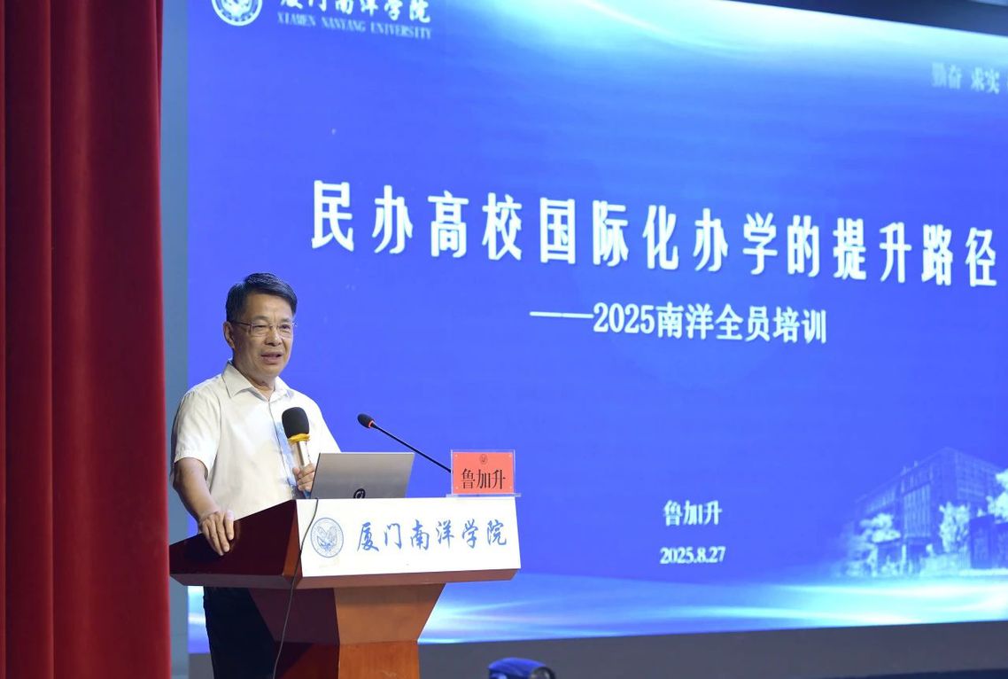 我校创办人鲁加升教授作《民办高校国际化办学的提升路径》专题讲座,探讨国际化办学的必要性、存在问题和发展策略。鲁加升教授指出,国际化办学的基本路径主要有三个关键维度:一是着力提升办学核心竞争力;二是全面提升人才培养质量;三是切实提升学生国际就业竞争力。他结合学校办学理念,特别强调 “南洋学院没有坏孩子”,鼓励全体教师主动走近学生、倾听学生需求,相信 “一杯咖啡的力量”,为国际化育人营造温暖包容的环境。