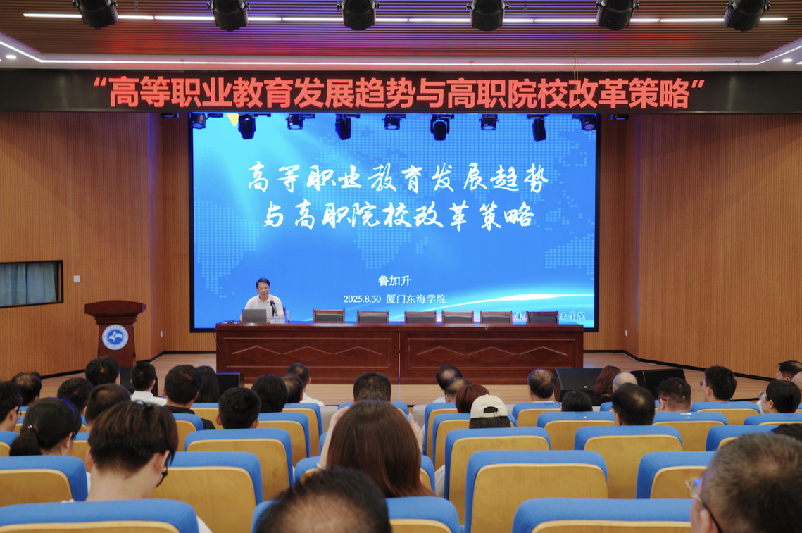 8月30日上午,厦门东海职业技术学院特邀我校创办人、南洋教育投资董事长鲁加升教授作专题讲座。在厦门东海职业技术学院五号楼报告厅,鲁加升教授以《高等职业教育发展趋势与高职院校改革策略》为题,为该校全体教职工带来了一场兼具理论深度与实践智慧的学术盛宴。