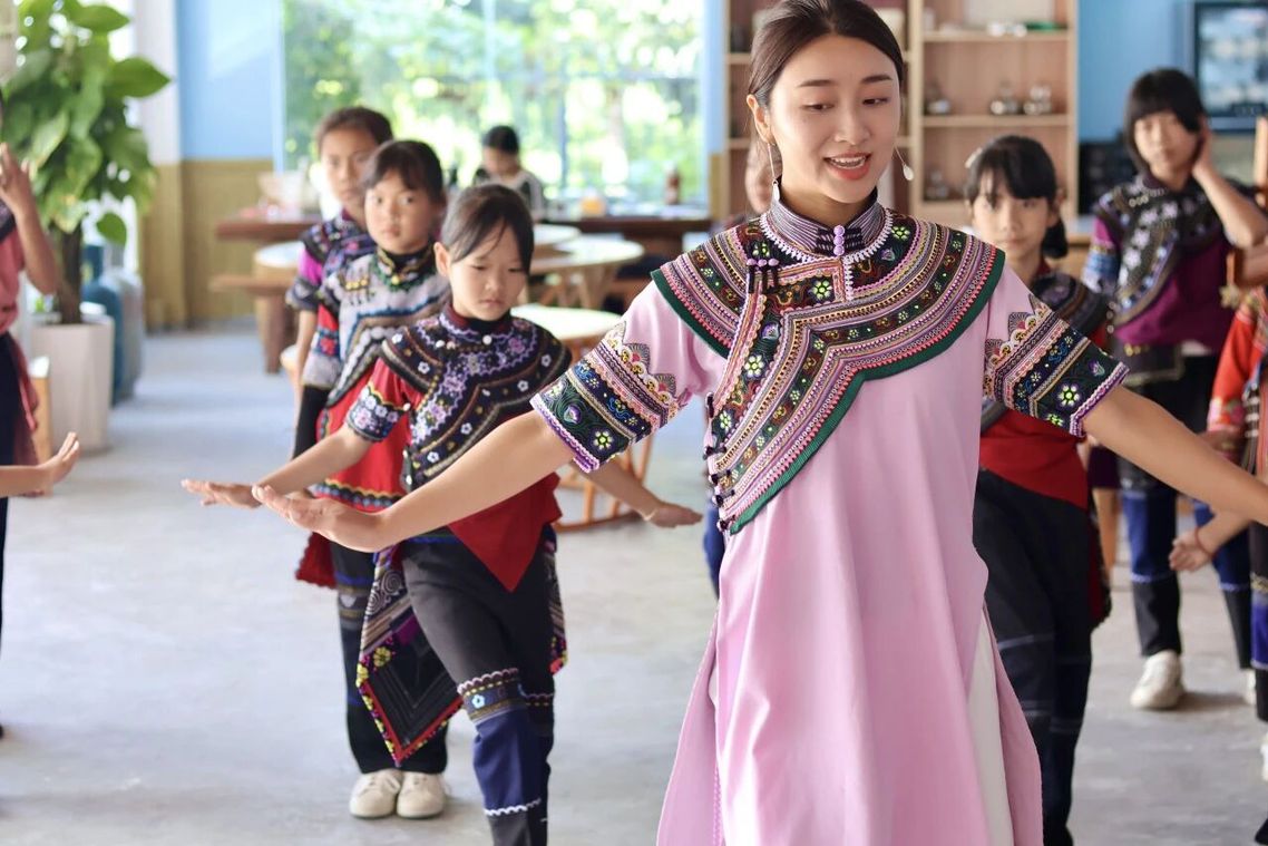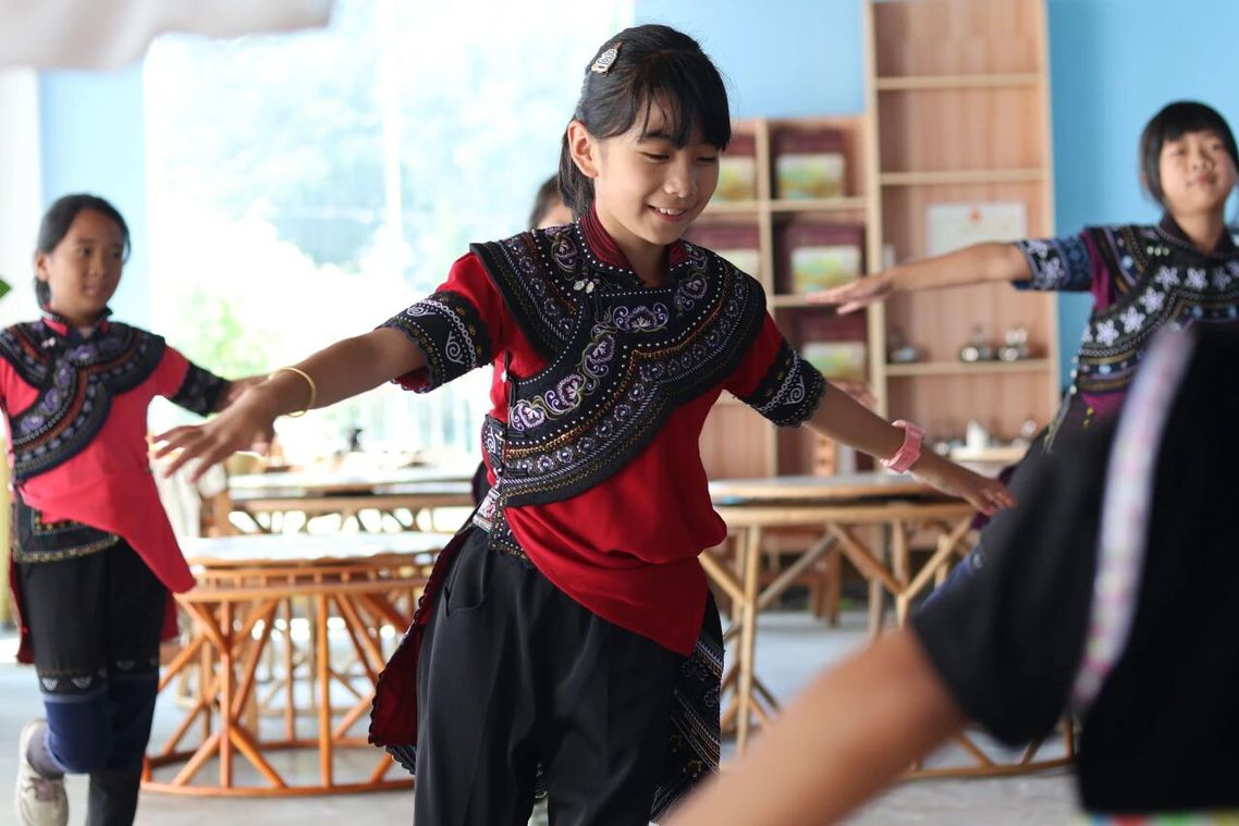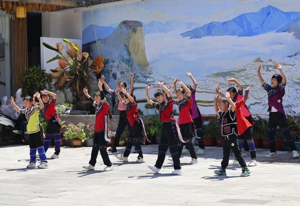 孩子不仅学习彝族舞蹈《哈尼宝贝》、启蒙舞蹈《表情秀》、中华咏诗舞《赠汪伦》,还重新编排了国家级非物质文化遗产哈尼族《乐作舞》的舞蹈片段。谈及为什么要教孩子们这些舞蹈时,袁颖捷说当地的舞蹈极具特色和魅力,充满对生命的庆祝,对自然的赞歌。我们保留了如此完整的原生态舞蹈,作为一名党员教师,我们有义务也有责任,继承和弘扬优秀的传统文化。