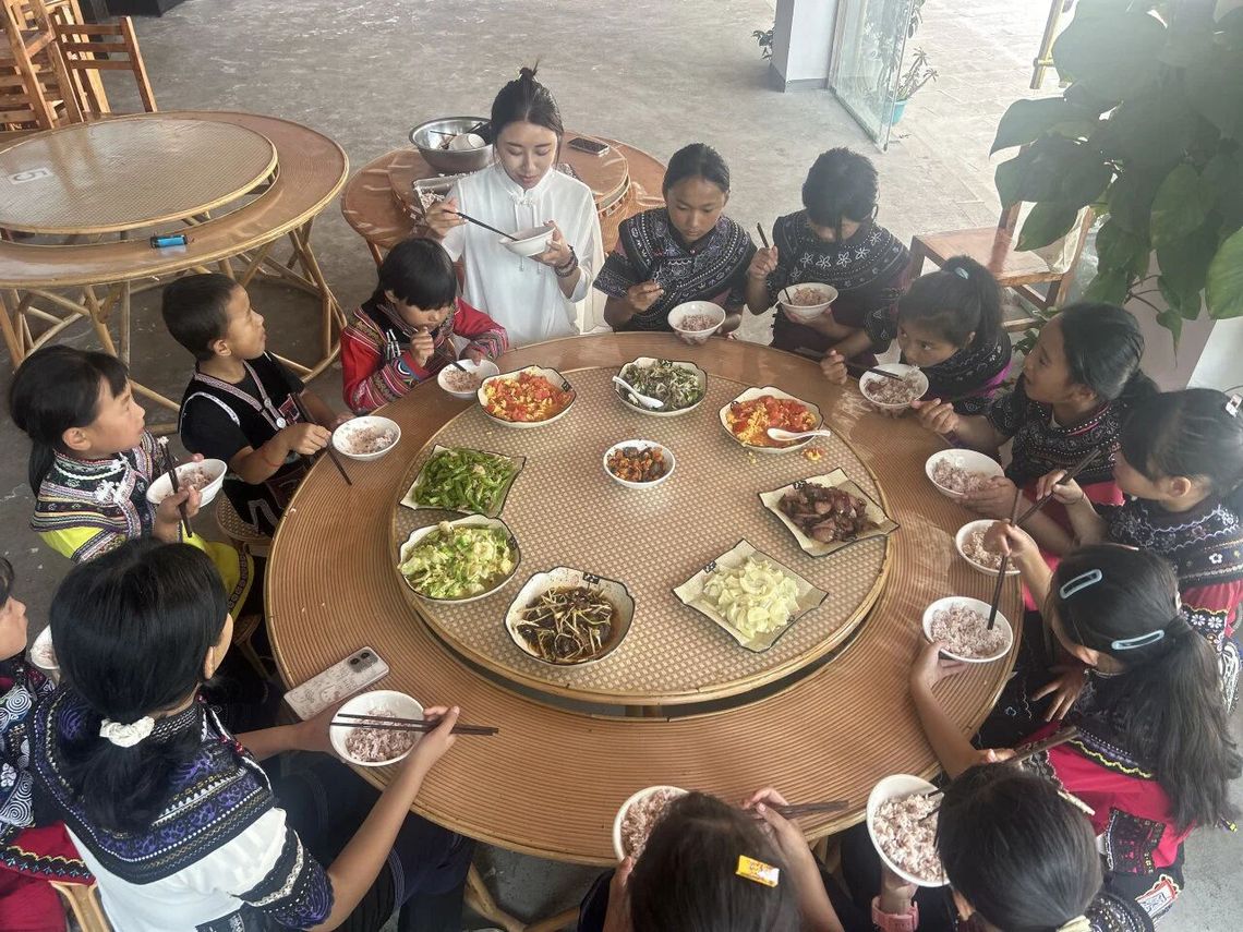 短暂的支教时光,美育的种子已悄然种下。孩子们每天都期待着上课,围着袁颖捷叽叽喳喳地询问外面的世界是什么样子,和袁颖捷一起吃饭、一起跳舞。临走的时候,有一位小朋友摘了路边的桂花送给袁颖捷,她说:“老师,祝你身体健康。”朴实无华的言语里,是孩子发自内心的、最诚挚的祝福。