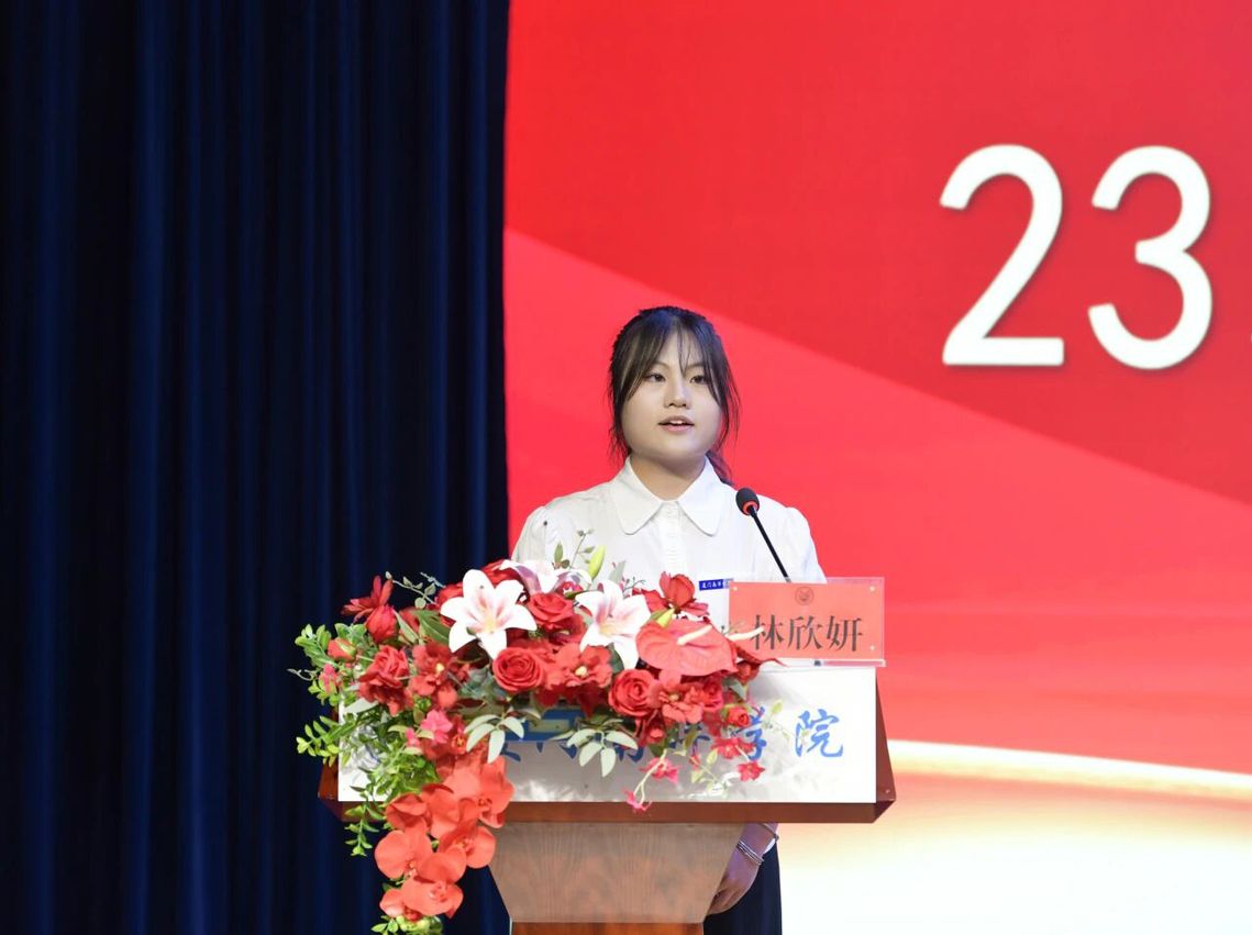 23级城市轨道交通运营管理2班林欣妍同学作为学生代表发言,她向全体教师致以诚挚的祝福与崇高的敬意,并分享了在老师们的帮助和指导下,在南洋不断成长的故事。她代表全体同学郑重承诺,将珍惜韶华、勤勉学习、投身实践、修身立德,努力成长为栋梁之材。