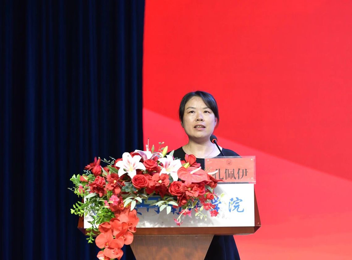 经济管理学院教师孔佩伊博士作为教师代表发言,她回忆了十五年前初到学校做兼职教师时,学校教学条件有限但仍克服困难开展教学的情景,并对比如今学校在硬件设施、产教融合等方面的飞速发展。二十五周年校庆是学校的新起点,祝愿老师们桃李芬芳、学校生日快乐,希望大家同心砥砺向未来迈进。