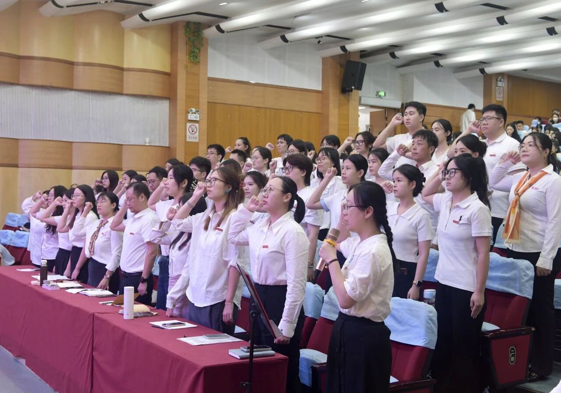 新入职教职工宣誓环节,党委教师工作部部长邹少琴带领全体新入职教职工庄严宣誓。铿锵有力的誓言,不仅是新教师对教育事业的郑重承诺,更展现了学校教师队伍蓬勃向上的精神风貌。