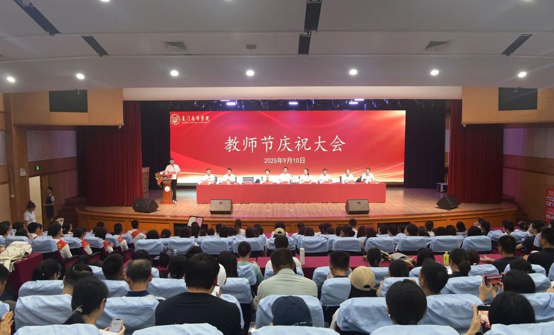 金秋送爽,师恩难忘。9月10日下午,我校在活动中心礼堂(主会场)与仙岳报告厅(分会场)同步举行2025年教师节大会。学校创办人、南洋教育投资董事长鲁加升教授,校领导鲁晓芹、陈宏瑶、钟石根、许智坚、李振杰、蓝德森、侯红科,原副校长、马克思主义学院原院长何卫华及全体教职员工齐聚一堂,以最真挚的情感庆祝教师节,共同回顾育人成果,表彰先进典型,凝聚奋进力量。大会由副校长许智坚主持。