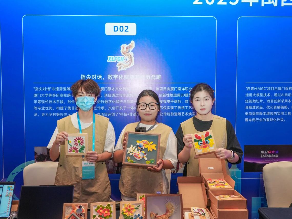 9月27日,我校黄澄、林莉、冯蓓蓓、陈新艳、孙超(厦门大学)老师指导的《指尖对话-数字化赋能非遗剪瓷雕》创业项目代表厦门市亮相2025年闽西南协同发展区第六届创业项目推介会暨厦门“源来好创业”资源对接会。