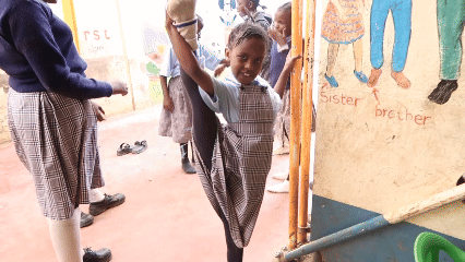 “在基贝拉,孩子们即使饥饿,他们只要听到音乐,就会随着节奏快乐舞动,这是他们的天性,是上天给他们的天赋。这里的男孩儿,他们唯一的快乐就是踢足球,但他们连一个像样的足球都没有,只有一个用布缝的球。即使这样,他们也玩得很开心。女孩儿的娱乐,她们会挑一根绳子跳绳,绳子系了很多破旧的结。”随着关系的贴近,孩子们主动向王今展示她们的技能,邀请她一起跳舞,踢球。