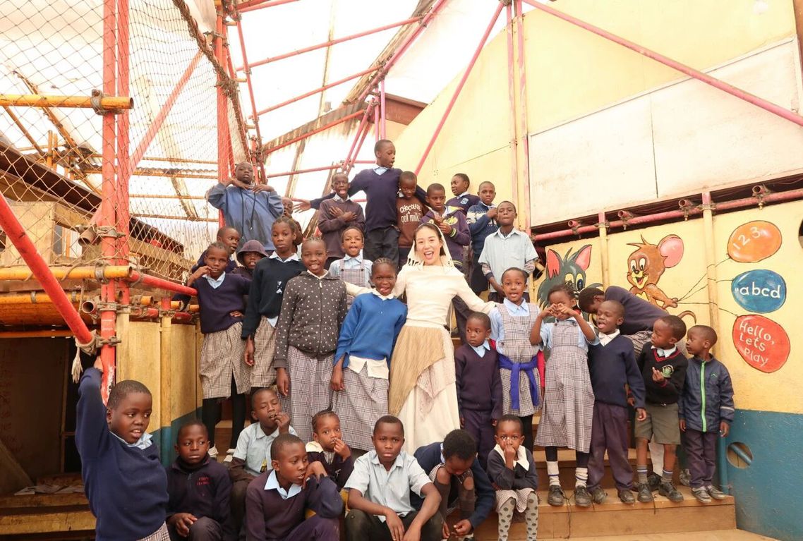 王今和内罗毕基贝拉贫民窟孩子们的第一次见面是在学校里。土墙围起来的不足70平的空间里,既是教室,也是操场。王今和当地学校负责人正在分发饼干,孩子们围着王今,眼神里带着点戒备和冷漠,看着眼前的陌生女人。