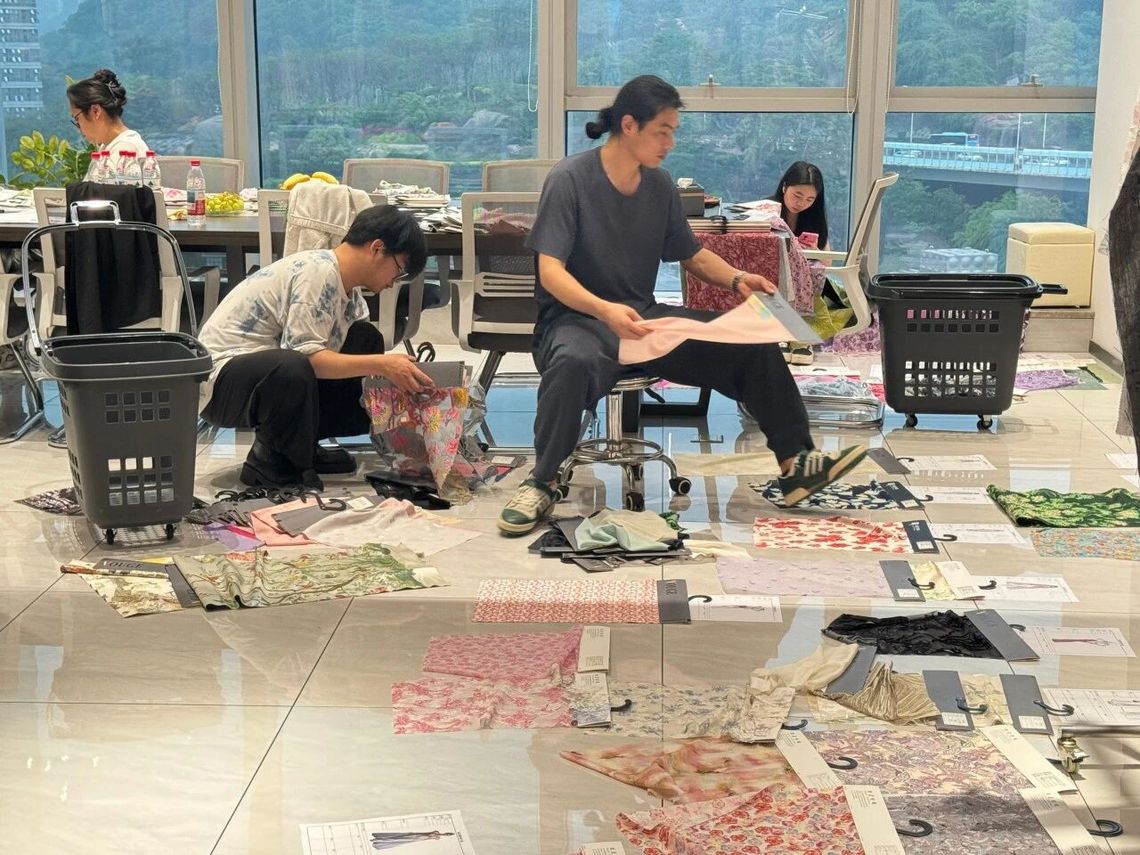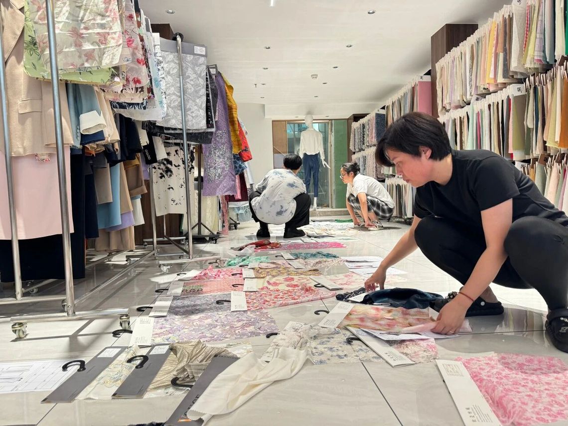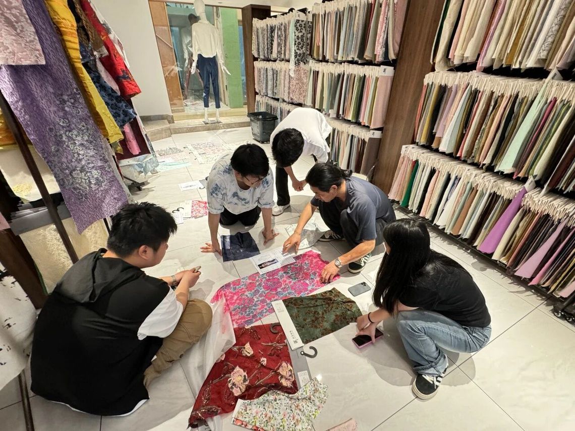 “时间很紧张,我们要和时间赛跑。因为学生和我们平常都有课,所以我们选了周六跑到面料厂,在一天的时间里,选出了上千种面料。选出的面料,不仅要一边精选一边对比线稿,还要考虑料子和款式的复杂性。”