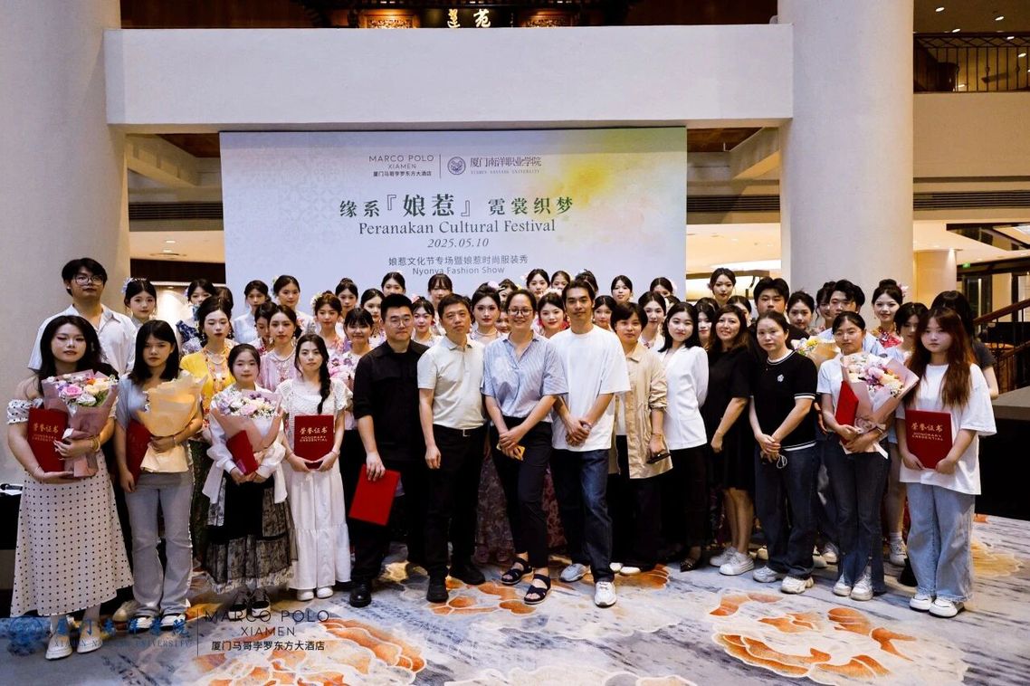 2025年5月10日,这时距接到通知仅仅109天,在厦门马哥孛罗东方大酒店,“缘系‘娘惹’ 霓裳织梦”时尚服装秀即将上演。此次秀场35套娘惹服装均由我校师生在这109天中,从零开始创作而成。自发布参赛通知开始,前后共有190名师生踊跃参赛,提交148个系列、约740套、1400款设计稿件,最后呈现了一场传统与创新交织、中新文化交融的视觉盛宴。