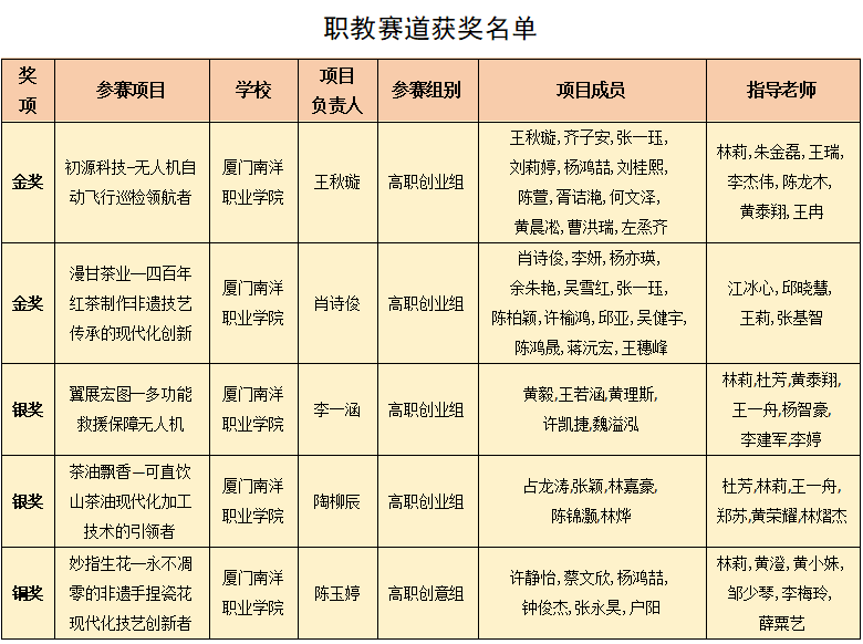 “初源科技”、“漫甘茶业”参赛项目勇夺赛事金奖,这是我校首次斩获省赛双项金奖。同时“翼展宏图”、“茶油飘香”2个项目荣获银奖,“妙指生花”参赛项目荣获铜奖,刷新了学校自2015年参赛以来的获奖纪录。