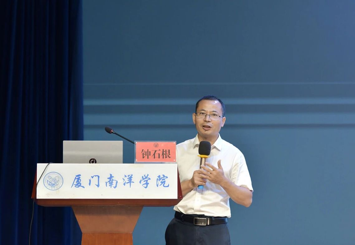 执行校长钟石根在致辞中重点强调鲁加升办学思想的精髓,明确“以爱为基、以适合为要”的育人方向。