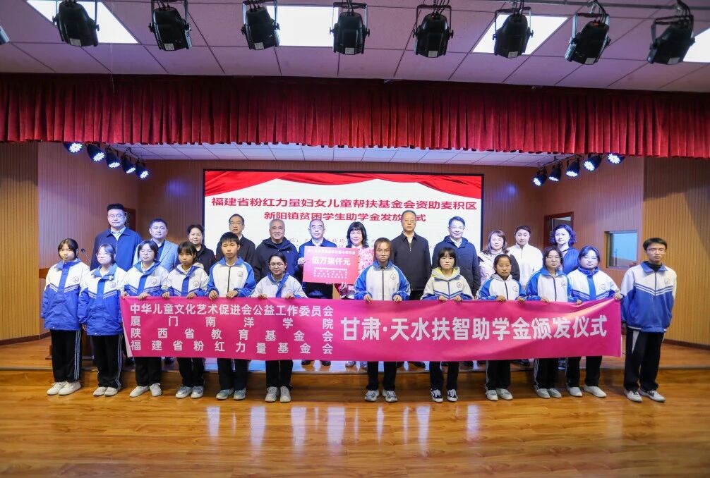 10月20日,我校携手中华儿童文化艺术促进会公益工作委员会、陕西省教育基金会、福建省粉红力量妇女儿童帮扶基金会,赴甘肃省开展助学行动。在甘肃省天水市麦积区新阳镇,爱心团队为25名贫困学生送去共计5.7万元助学金。这是我校继今年7月组织“陕南陕北扶智项目之山海逐梦”研学营后,再次跨越山海,点亮未来星火。