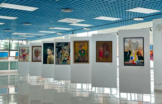 乘电梯到林婕作品展东盟画展(图书馆三楼)
