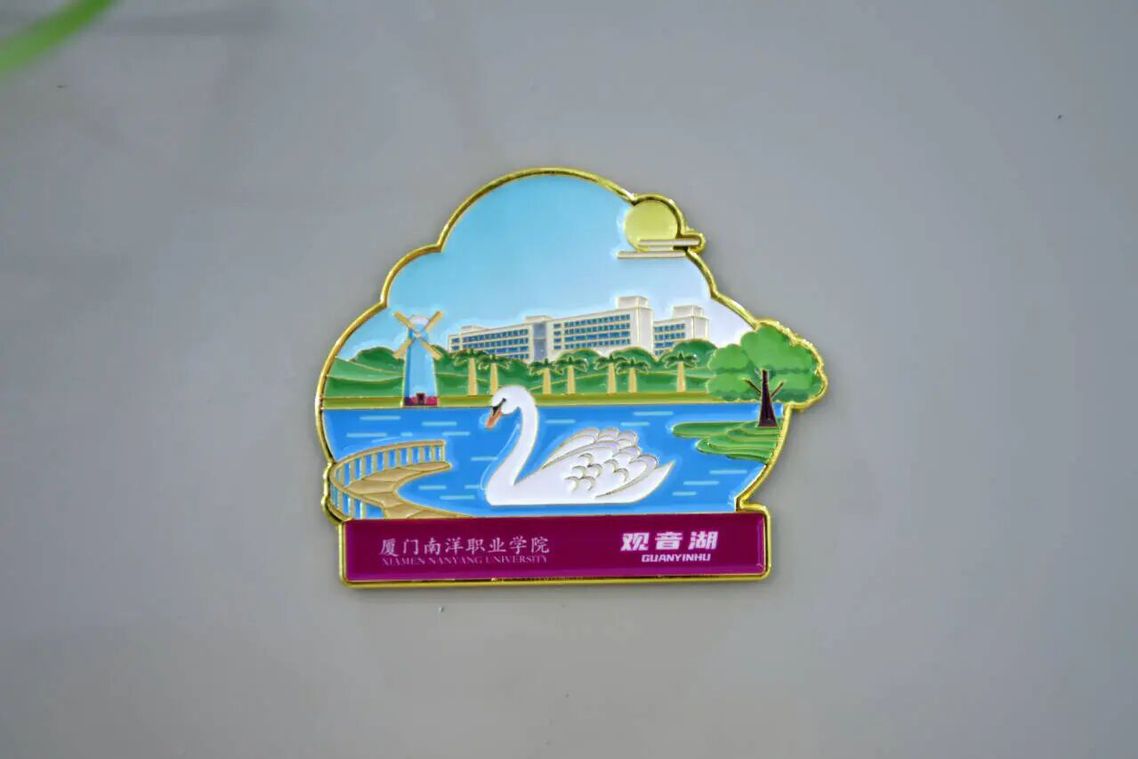冰箱贴以优雅的白天鹅、碧水环绕与风车草坪为主题,展现了南洋校园独有的浪漫与宁静氛围。湖水倒映校园建筑,简直是实景图一比一还原。这款文创将美景“定格”,让大家都能将南洋的美景“带回家”~