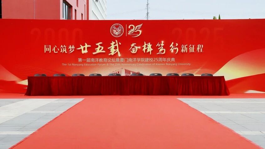 标志整体以数字“25”与南洋雄鹰的具象视觉载体与精神象征融合;鹰的意象是力量、远见、翱翔,既是建校25周年标志设计的核心元素,又呼应了南洋学院对学子们“鹰舞蓝天”的成长期许,代表了南洋25年来在职业教育领域的奋进与突破;