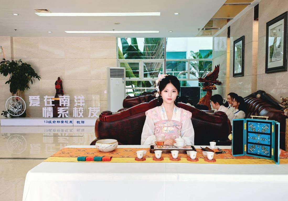 茶艺社团指导老师张荀介绍道,为筹备此次校庆奉茶活动,该社团成员提前一个月开展专项训练,力求通过细节展现学校的茶艺文化底蕴,希望以茶为媒,向嘉宾和校友传递校庆的喜悦,同时让更多人了解南洋文化与传统茶艺的魅力,将这份喜悦与文化隽永,融于一杯杯茶汤,播撒向更广阔的天地。