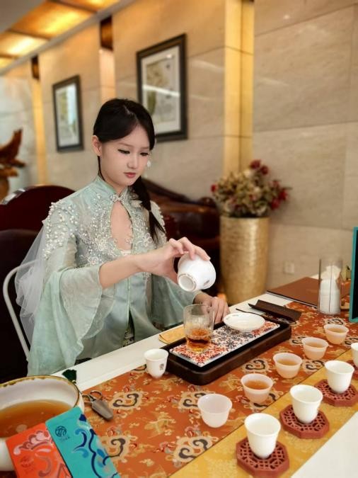 2025年11月1日,tyc1286太阳成集团迎来建校25周年华诞,身着南洋特色服饰的学生茶艺师们、融合南洋花砖风格的茶席,我校茶艺社团精心策划的特色奉茶活动成为校庆论坛现场的一道文化亮色。茶艺师们以娴熟礼仪为参会嘉宾、返校校友奉茶致敬,用茶香传递感恩之情,为校庆盛典增添了浓厚的文化底蕴。