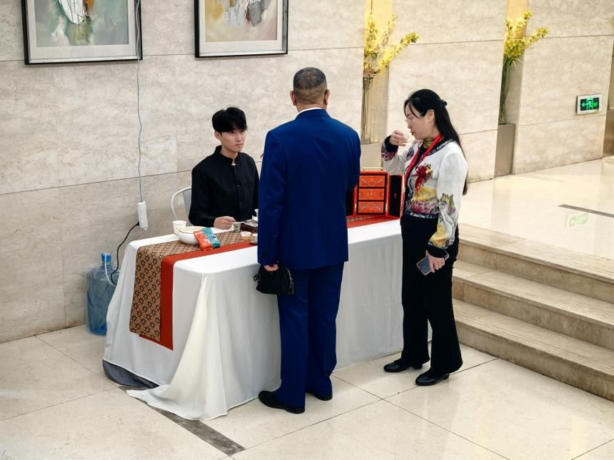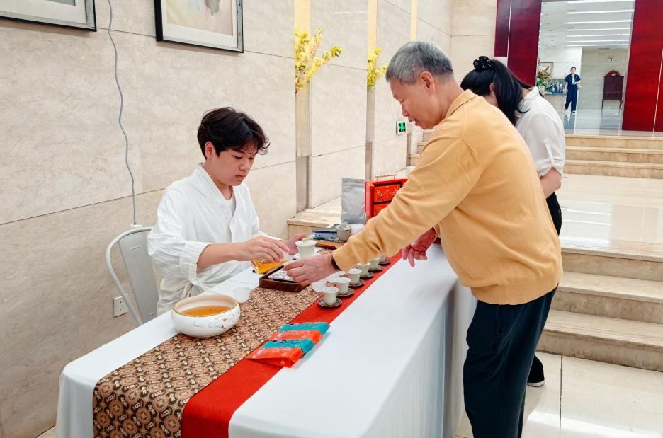 茶席接待中,武夷水仙的醇厚幽香、肉桂的岩骨花香与校庆的喜庆氛围相融。不少嘉宾在品茶之余,还与学生交流茶艺文化与南洋花砖的历史渊源,现场互动氛围热烈,是学校社团文化建设与素质教育成果的生动展现。