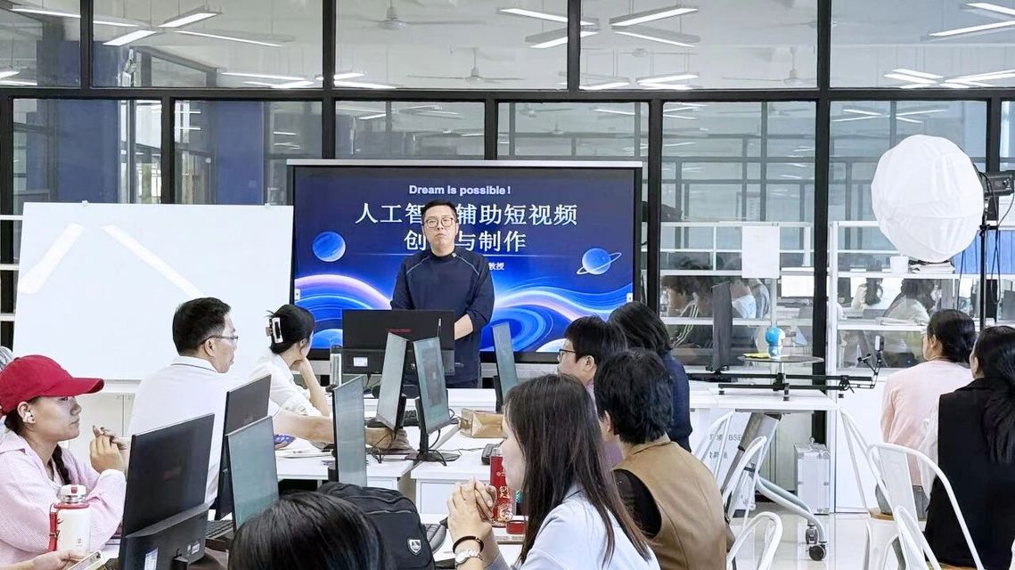 为进一步提升我校教师数字素养与教学创新能力,推动人工智能技术在教学中的应用,11月14日下午,我校举办“人工智能辅助短视频创意与制作”主题沙龙,校长助理侯红科及30余位教师代表齐聚一堂,与三创学院院长助理黄澄副教授共同探讨AI赋能教学应用。