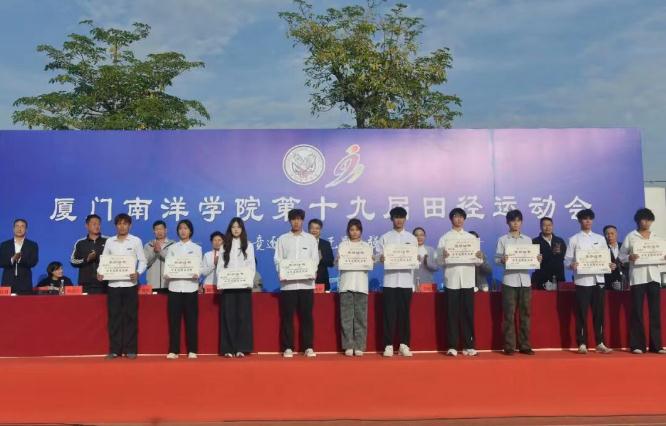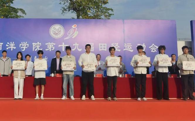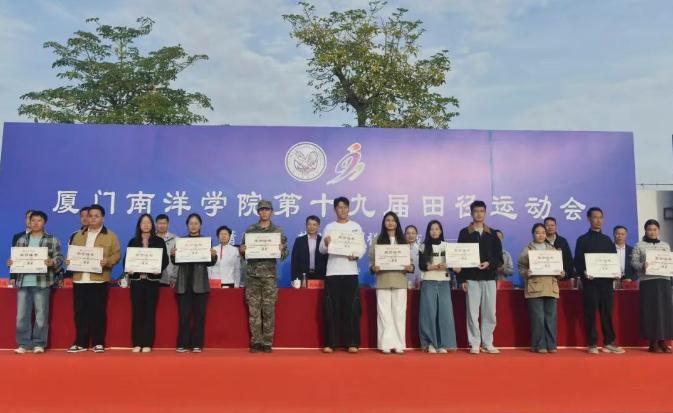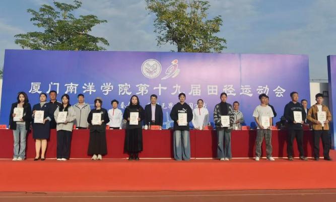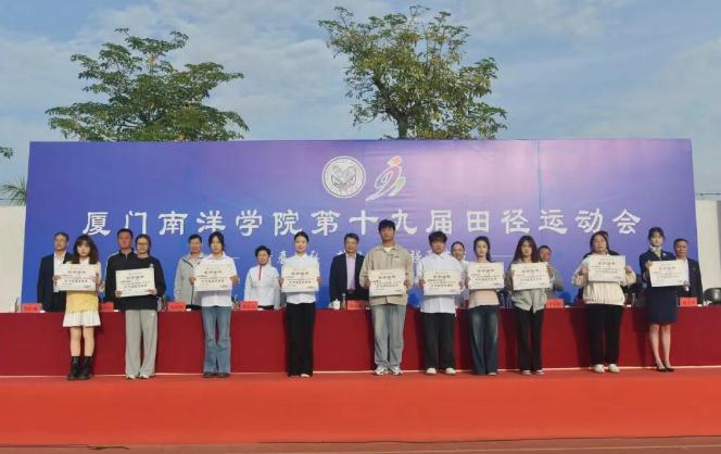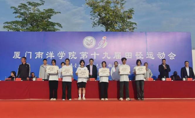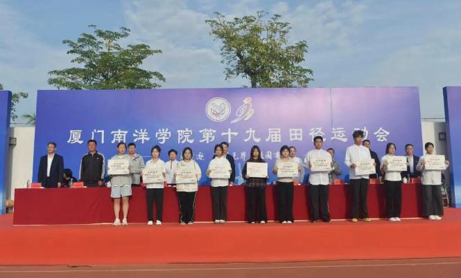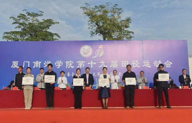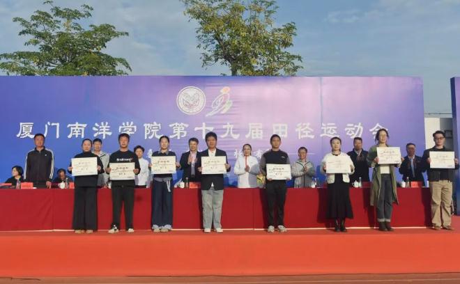 11月28日下午,厦门南洋学院第十九届田径运动会闭幕式在金尚田径运动场顺利举行。我校创办人、南洋教育投资董事长鲁加升教授,校领导鲁晓芹、陈宏瑶、钟石根、许智坚、蓝德森,原副校长何卫华,各职能部门处室中心负责人,各二级学院院长,党总支书记、分团委书记以及师生代表近两千人参加闭幕式。