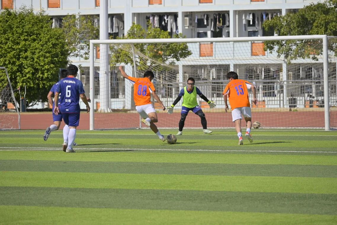 第三节成为整场比赛的转折点。厦门南洋学院教工队带着顽强的信念发起猛烈反攻,队员们的配合愈发默契,前锋精准穿插、中场巧妙传接、后卫稳固防守,一系列精彩操作接连上演,比分被成功追至2:2平,赢得了全场观众的热烈掌声。随后,双方你来我往、互有攻防,竞争十分激烈。最终,随着终场哨声响起,比分定格在4:3,厦门大学思源谷校友元老队凭借1分的优势胜出。