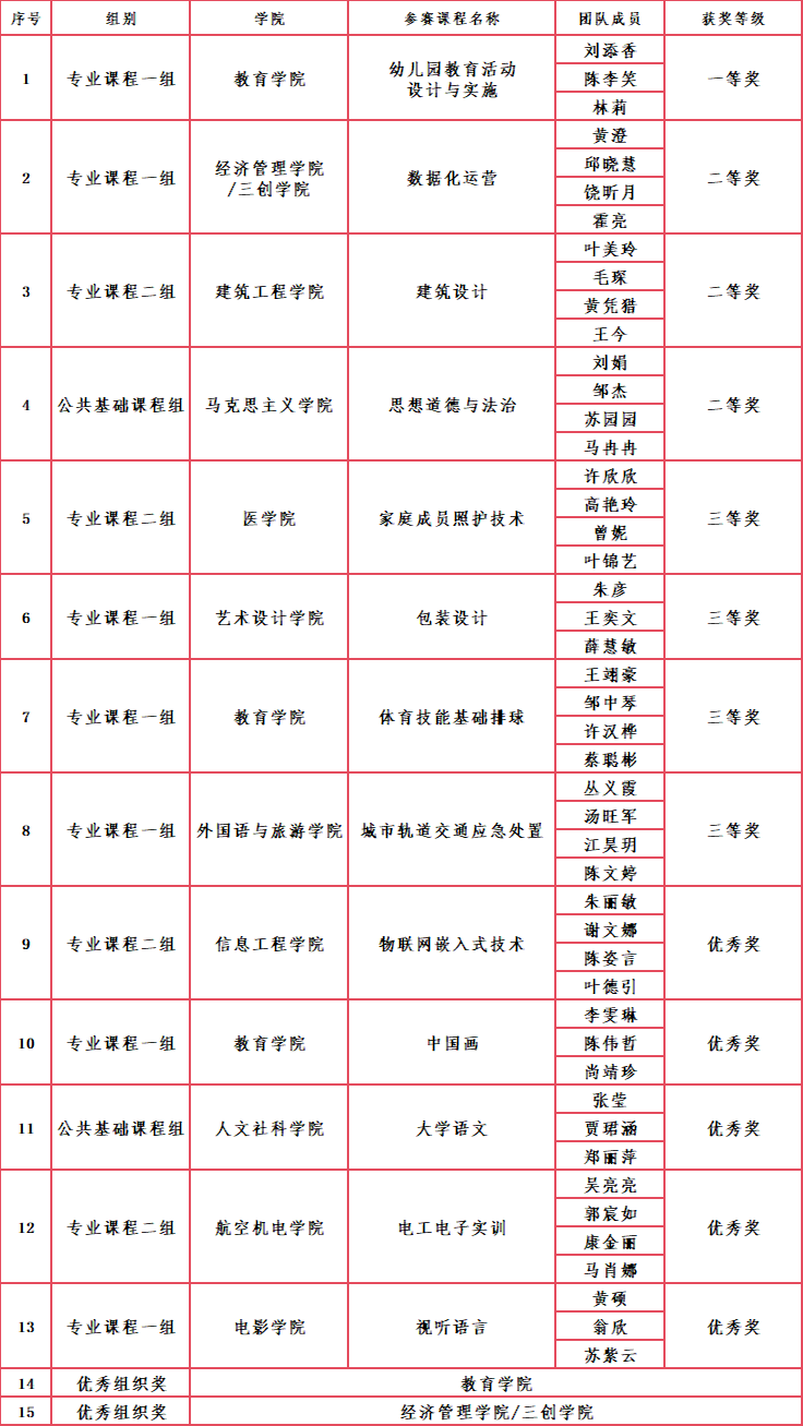 12月17日,我校2025年教师教学能力比赛在教学楼T4-T5圆满举办。经首轮选拔,13支教学团队脱颖而出晋级决赛。比赛共决出1个一等奖1项、3个二等奖、4个三等奖、5个优秀奖,教育学院、经济管理学院/三创学院被评为“优秀组织奖”。