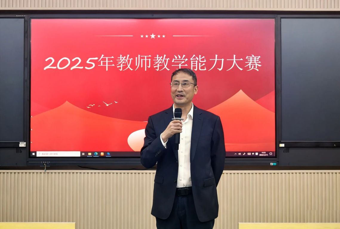 校长助理侯红科出席赛事并致辞。他寄语全体教师,新老教师应双向学习,新教师多向老教师汲取经验,老教师主动借鉴新教师的教学创新思路;同时强调,教师需紧扣学校“金专业、金课程、金师资、金基地、金教材”核心“五金”建设要求,立足实践、注重应用,推动科研成果与教育教学深度融合。最后,他希望全体参赛教师以赛促学、共同提升。