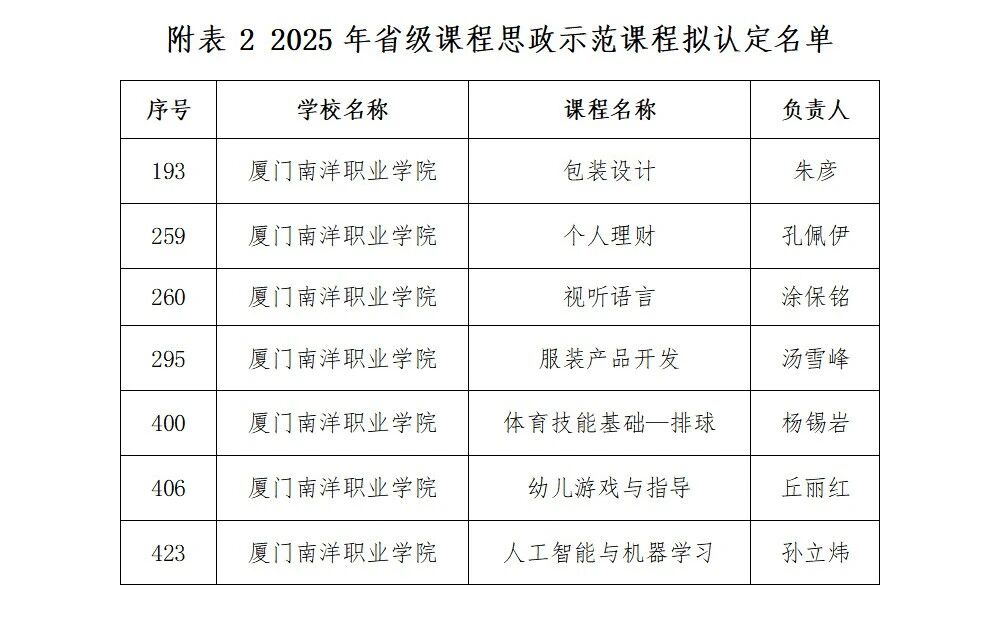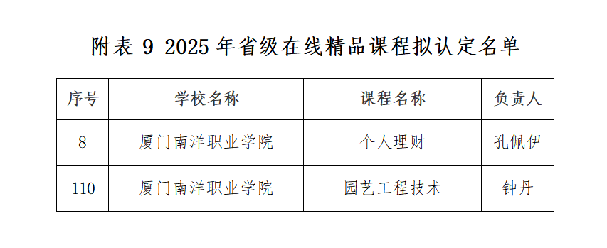 近日,福建省教育厅公布了2025年省级职业教育与终身教育重点项目名单。我校12个项目入选!其中课程思政示范课程7门,在线精品课程2门,闽台融合产业学院1个,学历继续教育课程2门。学历继续教育课程:课程名称《商务数据分析》(黄澄、邱晓慧、李娟、双巧、郑仕真),《跨境电商基础》(郑苏、林莉、黄澄、杜芳、柯希冉)。